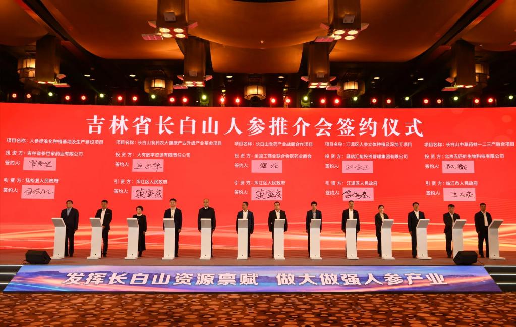 3月14日,吉林省長(cháng)白山人參推介會(huì )簽約儀式現場(chǎng)。新華社記者王曉林 攝