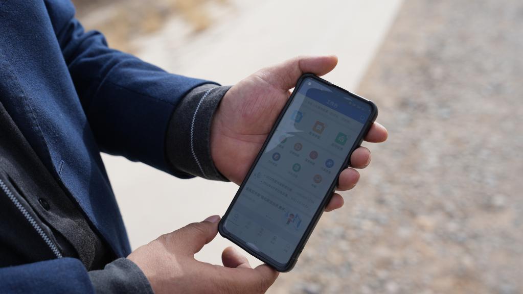 桂濤使用“河長(cháng)通”手機App進(jìn)行巡河打卡。(新華社記者鄒欣媛 攝)