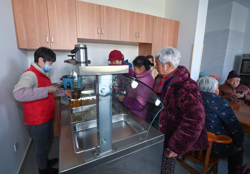 2023年2月21日,老人們在杭州市臨安區錦南街道居家養老服務(wù)中心的食堂用餐。新華社記者徐昱 攝
