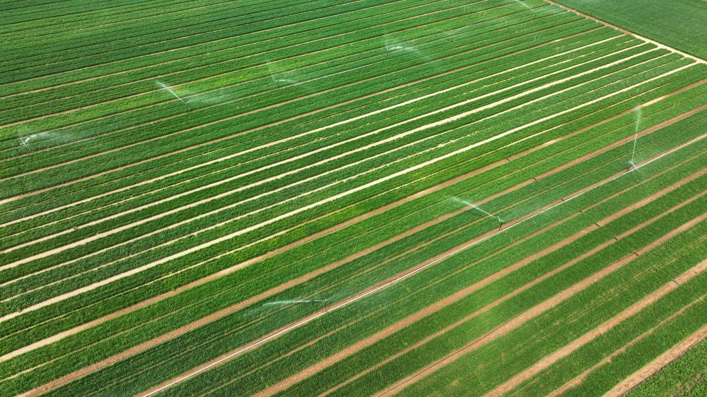 3月底,代文革種植的300畝麥田里,一排排全自動(dòng)噴灌設備將水均勻噴向田間,讓嫩綠的小麥“喝”上了“返青水”?!敖衲隄菜?,但小麥長(cháng)勢比往年都要好?!贝母镎f(shuō)。