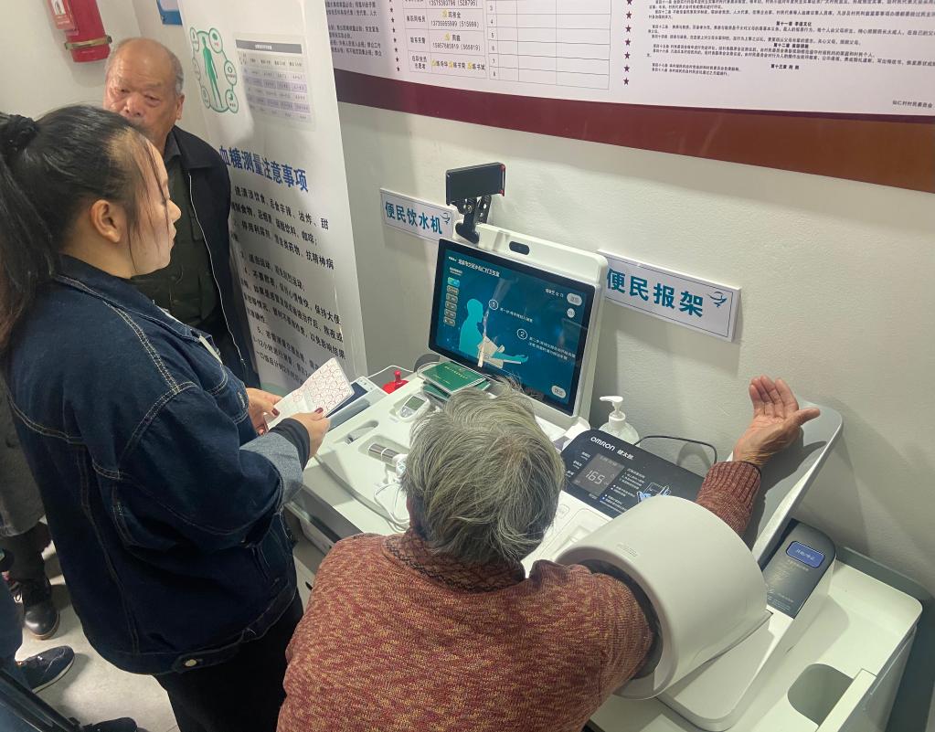 3月28日,麗水龍泉市蘭巨鄉仙仁村村民用“浙麗鄉村好醫”平臺做健康監測。新華社記者黃筱 攝
