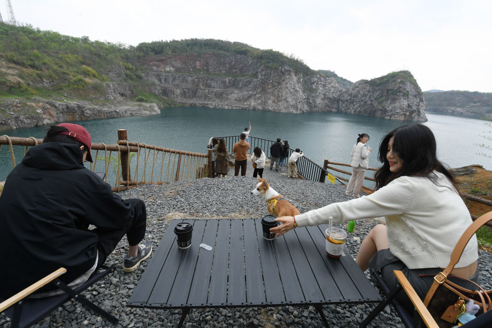 2023年4月7日,游客在浙江省湖州市安吉縣梅溪鎮紅廟村一咖啡館休閑。新華社記者 翁忻旸 攝