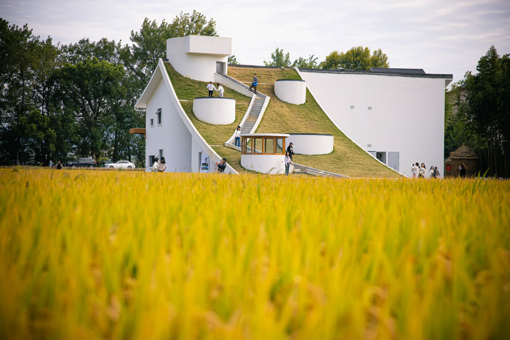 這是2022年10月25日拍攝的浙江省桐廬縣桐君街道梅蓉村的稻田與鄉村會(huì )客廳。新華社記者 江漢 攝