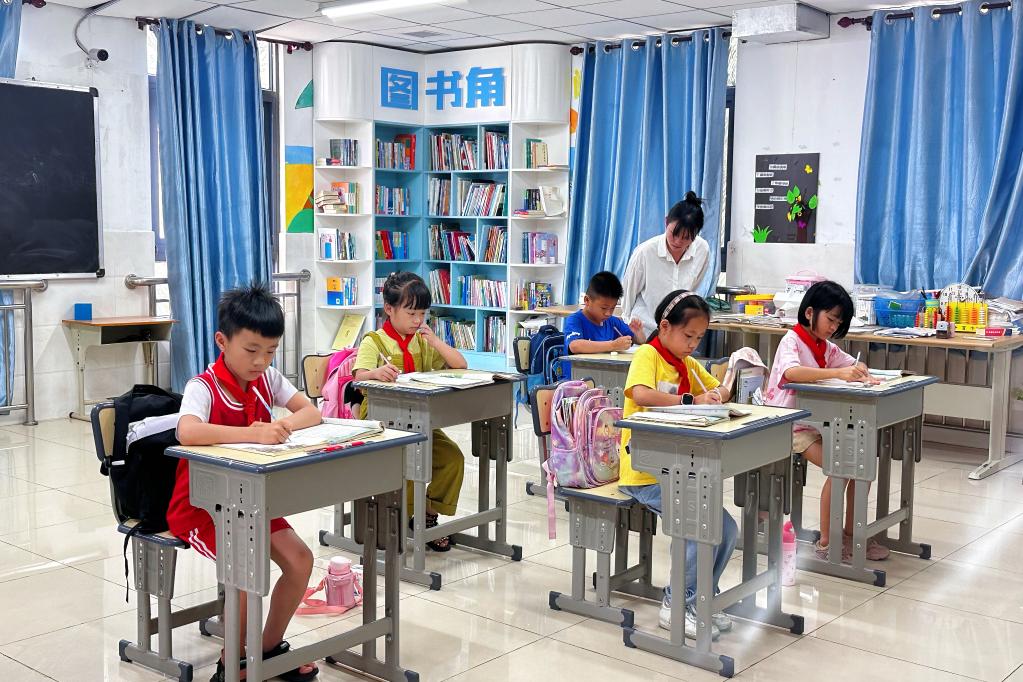 學(xué)校圖書(shū)角、教室里、操場(chǎng)上,記者總能看見(jiàn)孩子們閱讀、記錄、交流的身影。洪美叔老師指著(zhù)一個(gè)正給同學(xué)講故事的小男孩說(shuō):“他叫符傳順,父母都是漁民,不僅喜歡閱讀,還準備登上故事比賽的舞臺呢?!?/p>