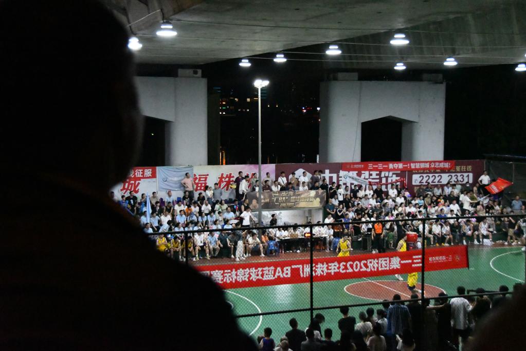 5月27日晚,市民在株洲市四橋籃球場(chǎng)觀(guān)看球賽。新華社記者 劉芳洲 攝