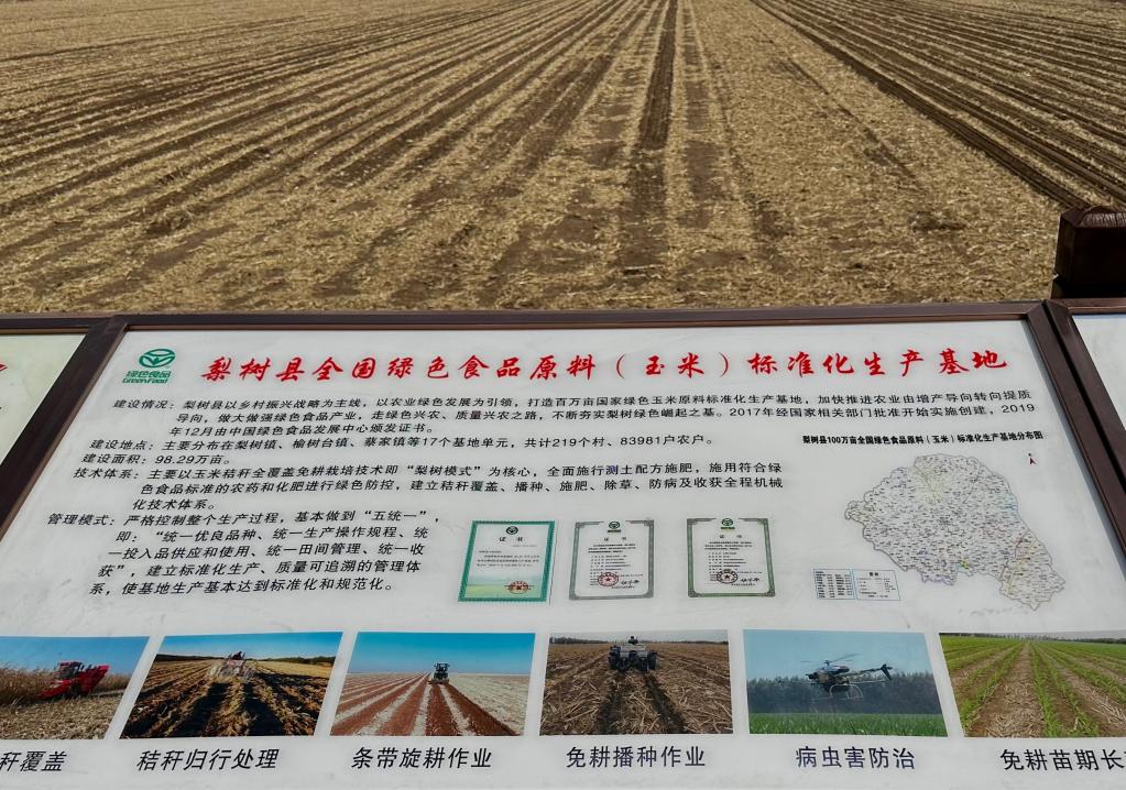 吉林省四平市梨樹(shù)縣介紹保護性耕作內容的展板。新華社記者 馬曉成4月24日攝