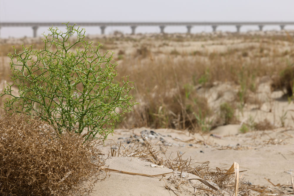 這是2022年5月19日拍攝的和若鐵路沿線(xiàn)種植的耐旱植物。新華社記者 丁磊 攝