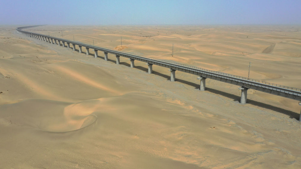 去年6月,和若鐵路通車(chē),與先前開(kāi)通的格庫鐵路、南疆鐵路“牽手”,標志著(zhù)環(huán)塔克拉瑪干沙漠鐵路線(xiàn)形成閉環(huán)。這也是世界首條環(huán)沙漠鐵路線(xiàn),全長(cháng)2712公里。
