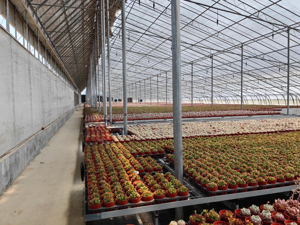 蘆李村的一處花卉大棚內,各種多肉植物整齊擺放。新華社記者陳國峰 攝