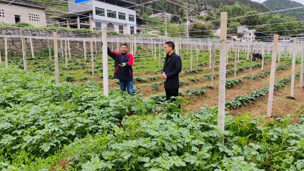 重慶市巫溪縣文峰鎮利民村致富帶頭人李國華在田間進(jìn)行種植技術(shù)指導。(劉慶甫 攝)