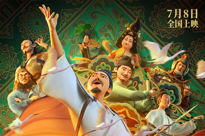 這部動(dòng)畫(huà)以168分鐘的超長(cháng)篇幅講述盛唐時(shí)期詩(shī)人李白、高適、杜甫等人的友誼,以及眾詩(shī)人對夢(mèng)想的不懈追求。沉浸式的觀(guān)影體驗,令書(shū)本中固化的詩(shī)句一下子立體起來(lái)。影院變成了孩子們的“大型背詩(shī)現場(chǎng)”,《長(cháng)安詩(shī)選》等衍生品脫銷(xiāo),片中人物李白、玉真公主等的裝束被競相模仿……