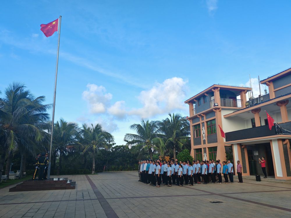 在我國最南端的地級市海南省三沙市,一曲《歌唱祖國》響徹在七連嶼趙述島上。7時(shí)24分,島上的工作人員、漁民列隊肅立、高唱國歌,五星紅旗在碧海藍天的映襯下迎風(fēng)飄揚。