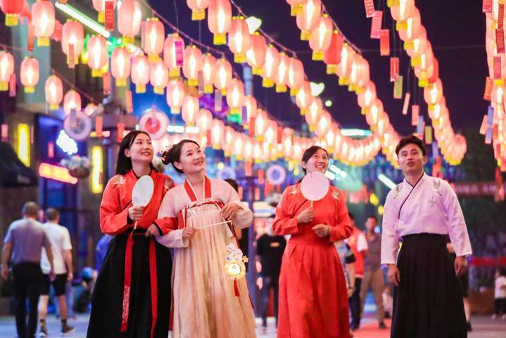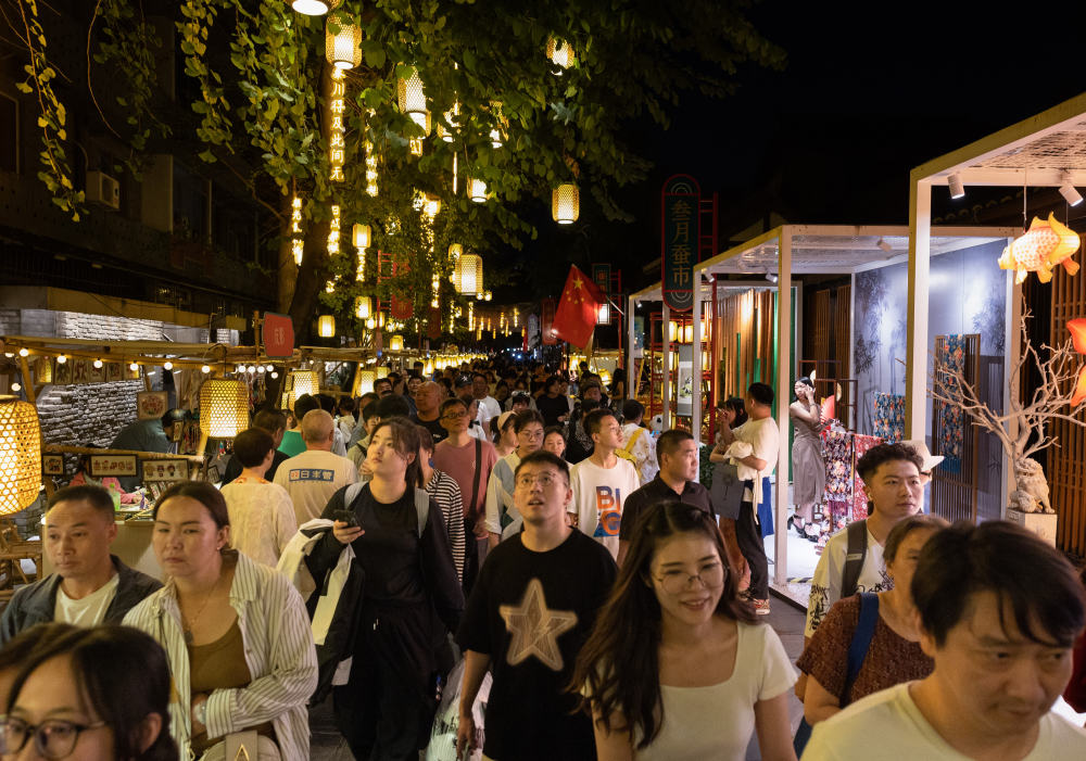 成都寬窄巷子新“十二月市”街區游人如織(9月29日攝)。新華社記者 江宏景 攝