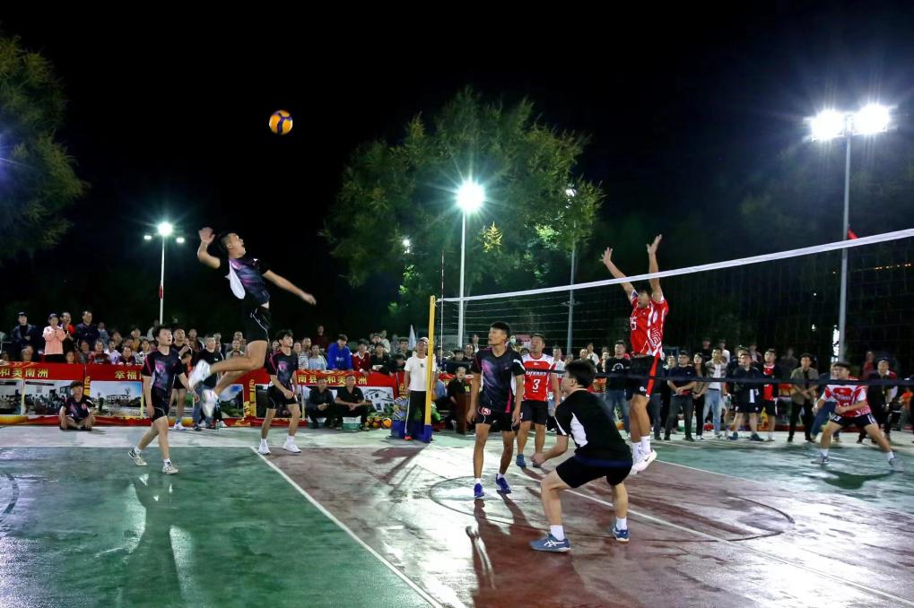 入夜,南洲村室外燈光球場(chǎng)人潮涌動(dòng)。10月1日至4日期間,南洲村舉辦“和美南洲”杯排球賽,共有24支隊伍參加,除了湖南省內的球隊,還有來(lái)自湖北、廣東等省份的球隊參加。