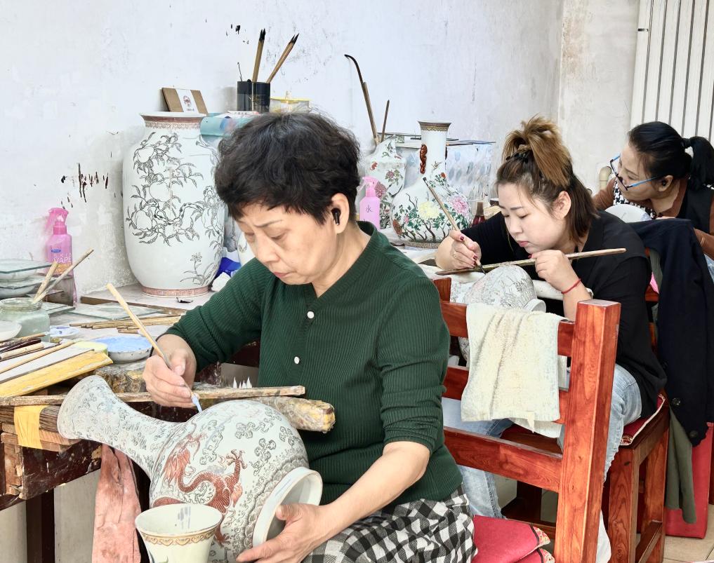 今年9月,海河游船子牙河航線(xiàn)實(shí)現試通航,游客從白灘寺村碼頭登岸游覽,首站便可以參觀(guān)天津市級非物質(zhì)文化遺產(chǎn)——粉彩瓷器制作技藝。