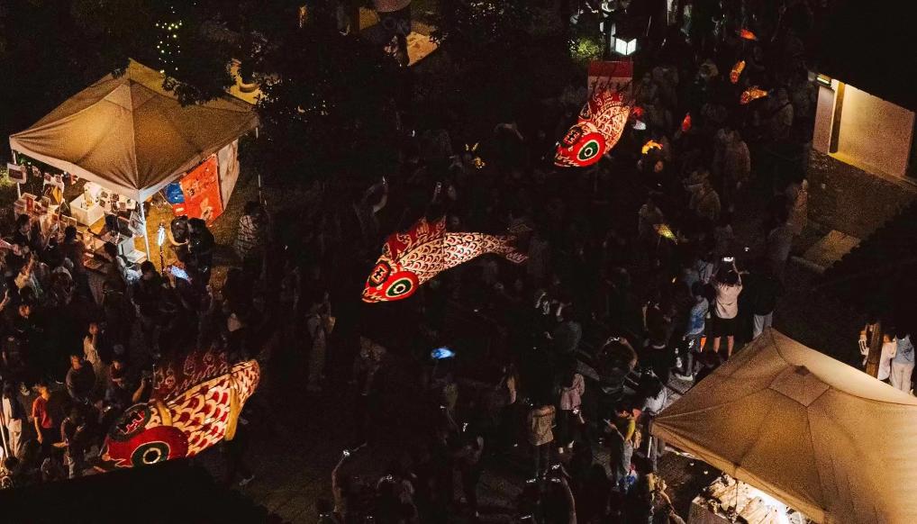 中秋國慶長(cháng)假期間,汪滿(mǎn)田魚(yú)燈參加了蘇州石湖景區的手作藝術(shù)節。(張小君 攝)