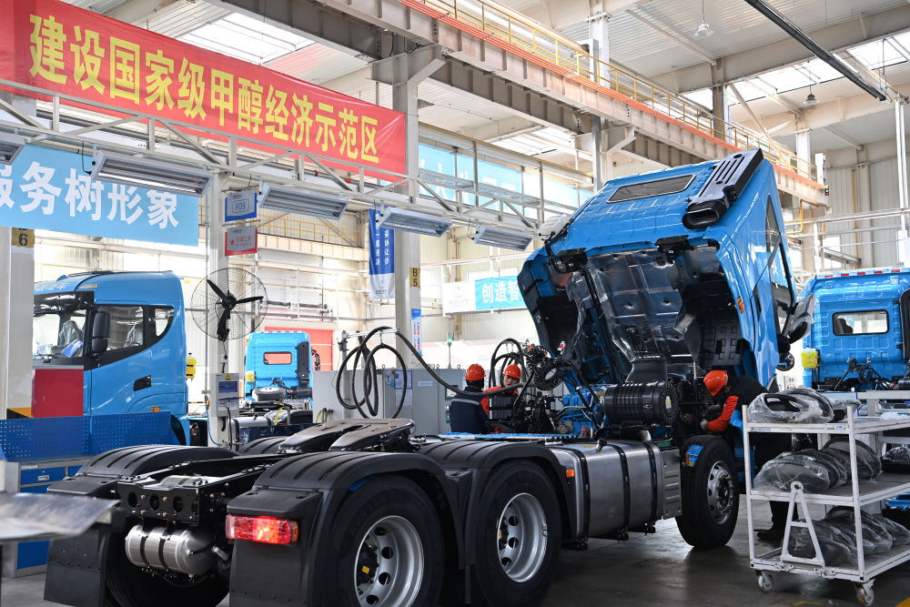 在汾河中游,以甲醇產(chǎn)業(yè)為引領(lǐng),晉中市開(kāi)啟了能源轉型的新賽道。走進(jìn)吉利汽車(chē)晉中基地生產(chǎn)車(chē)間,一輛輛甲醇重卡、甲醇轎車(chē)經(jīng)過(guò)最后檢測,緩緩駛出生產(chǎn)線(xiàn)。山西吉利新能源商用車(chē)有限公司生產(chǎn)物流部副部長(cháng)李恒說(shuō):“我們從去年6月全省首臺甲醇重卡下線(xiàn)以來(lái),已經(jīng)交付了1200余臺,還有上千臺訂單正在生產(chǎn)?!?/p>