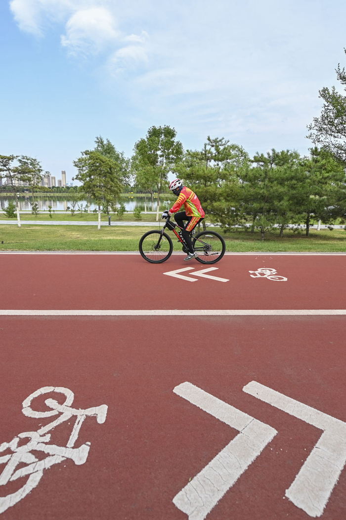 市民在山西省太原市汾河公園內騎行(2023年6月27日攝)。新華社記者 楊晨光 攝