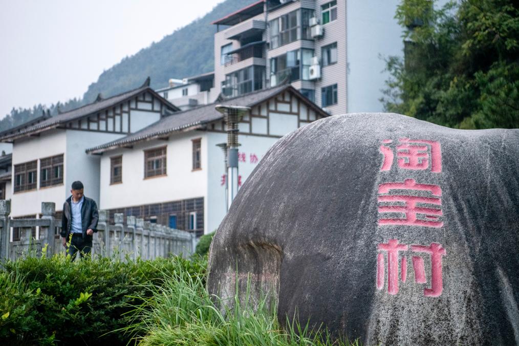 10月11日在湖北省鄖西縣下?tīng)I村拍攝的“淘寶村”標志。新華社記者伍志尊 攝