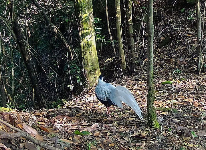 這是古藺縣赤水源黃荊老林自然保護中心布設在黃荊老林中的紅外相機拍攝的白鷴(2022年5月7日攝)。顏宇供圖