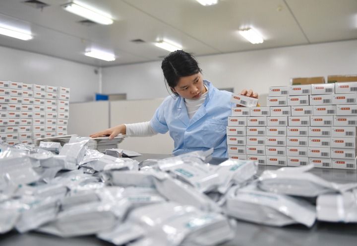 11月10日,在古藺縣肝蘇藥業(yè)有限公司內,工作人員在分裝用趕黃草制成的藥。新華每日電訊記者 劉坤 攝