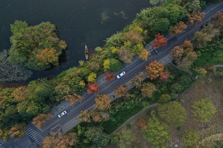 這是無(wú)人機拍攝的杭州西湖楊公堤附近的景色。新華社記者 黃宗治 攝