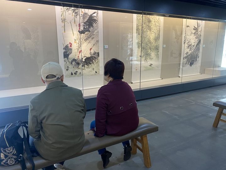 由抱青會(huì )館轉型的杭州國畫(huà)院美術(shù)館內,一對老夫婦在賞畫(huà)。新華每日電訊記者 朱涵 攝