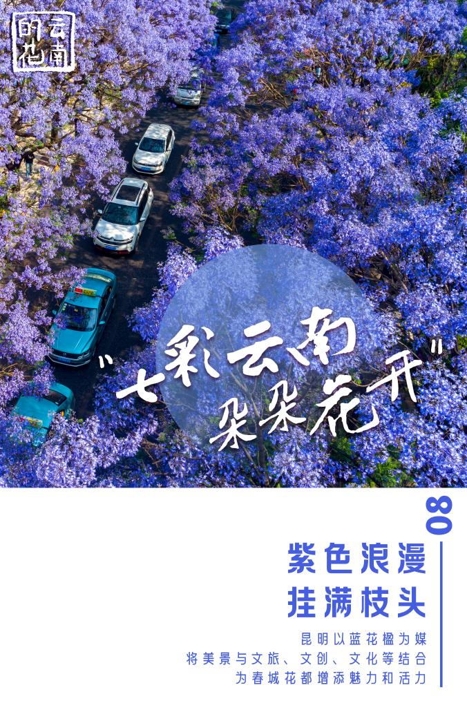 近年來(lái),昆明以藍花楹為媒,將美景與文旅、文創(chuàng )、文化等結合,為春城花都增添魅力和活力。