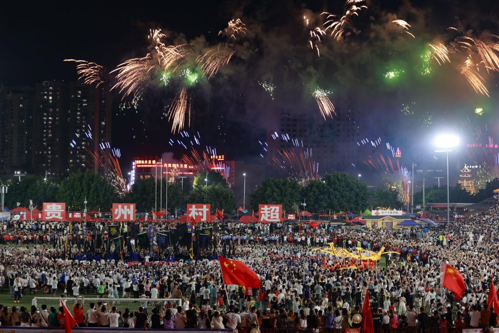 7月29日,觀(guān)眾在貴州“村超”總決賽現場(chǎng)(無(wú)人機照片)