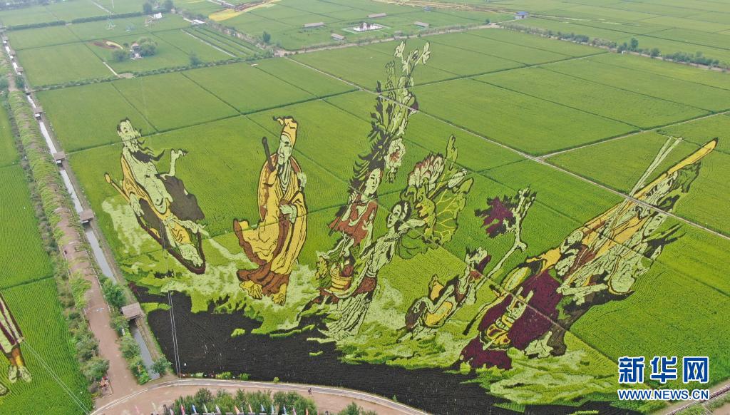 這是8月16日拍攝的稻田畫(huà)《八仙過(guò)?!罚o(wú)人機照片)。