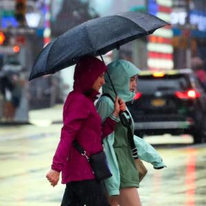8月22日,人們行走在雨中的美國紐約時(shí)報廣場(chǎng)上。受熱帶風(fēng)暴“亨利”影響,美國紐約當日迎來(lái)降雨天氣。新華社記者 王迎 攝