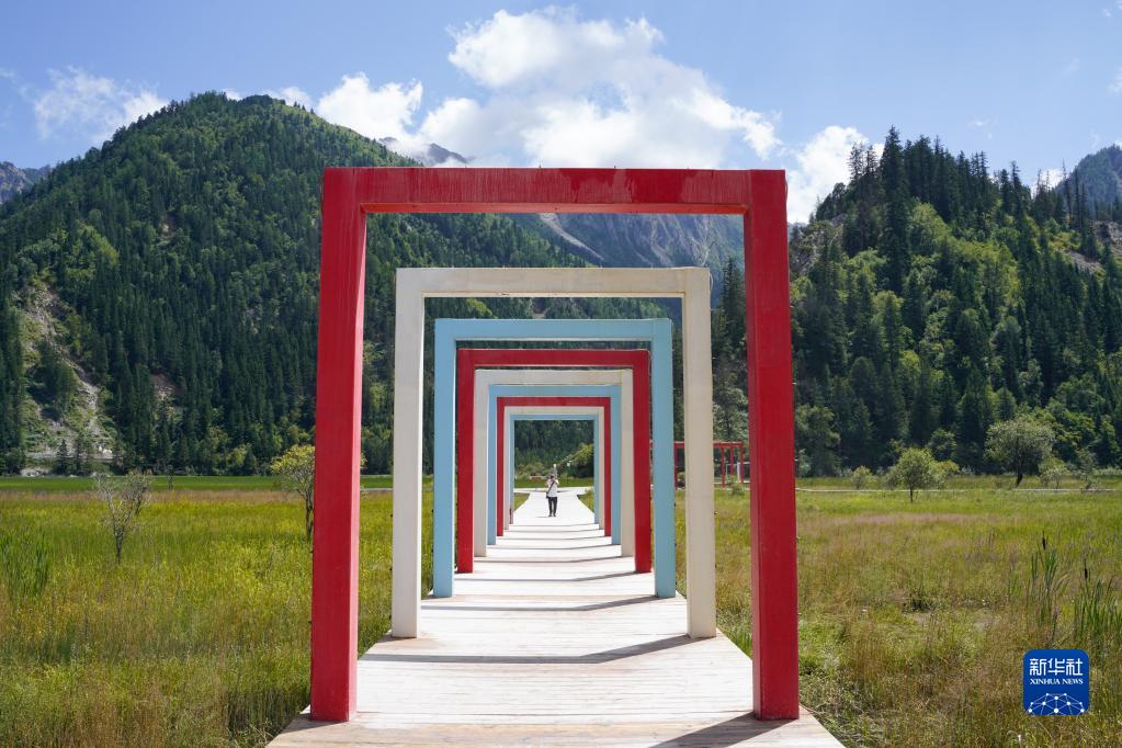 8月24日,游客在九寨溝愛(ài)情海景區拍照。