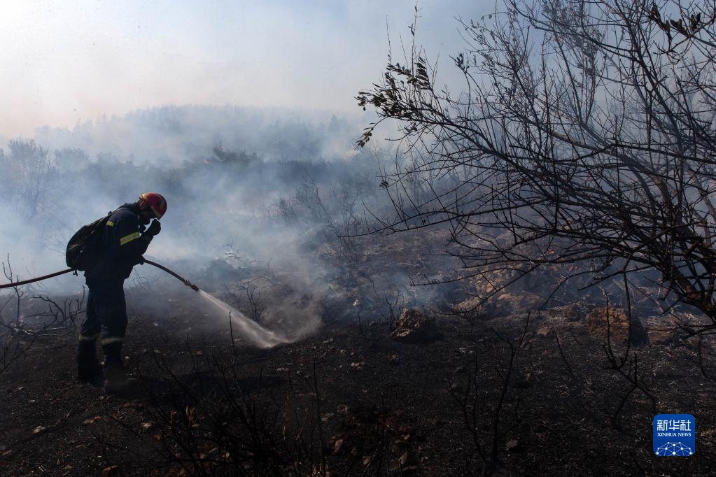 8月23日,消防員在希臘雅典西北的維利亞村進(jìn)行滅火作業(yè)。
