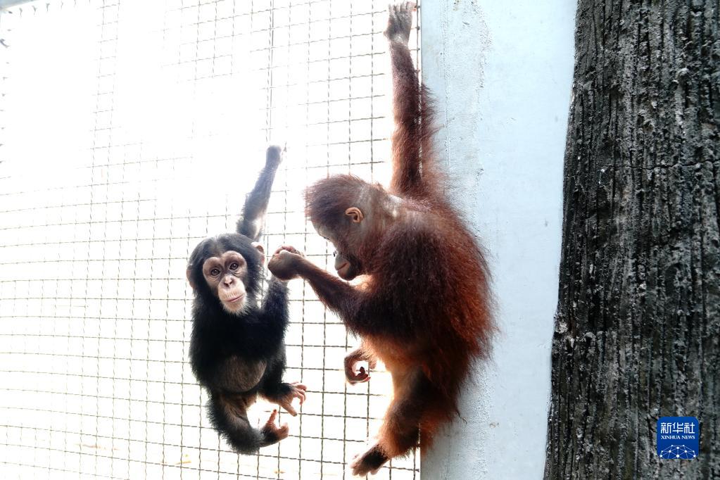 8月28日,“黑妞”和黑猩猩小伙伴交上了朋友。新華社記者 張建松 攝
