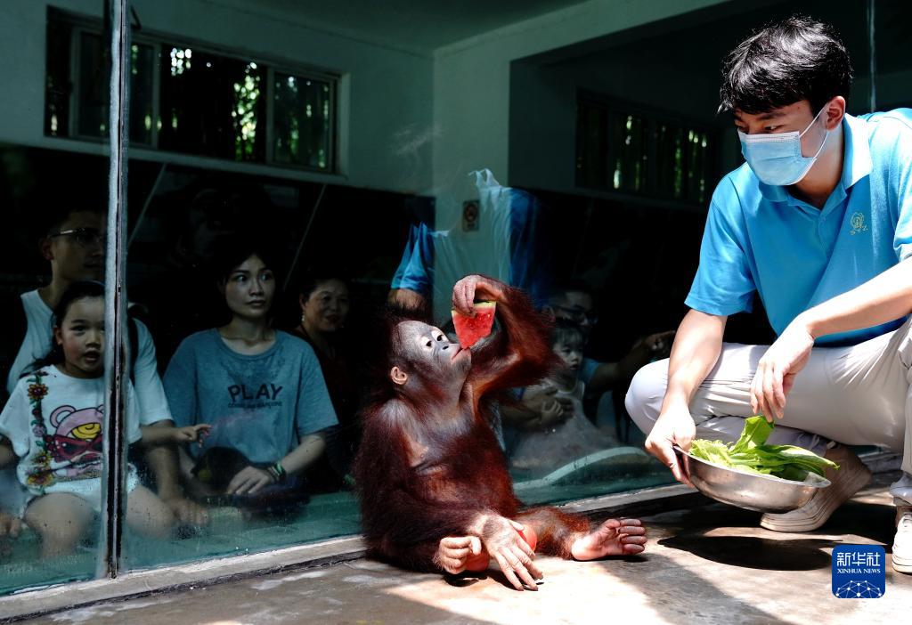 8月28日,“黑妞”背對著(zhù)游客開(kāi)心地吃起了西瓜。新華社記者 張建松 攝