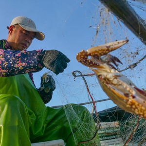 “風(fēng)浪越大,海水越渾濁,漁網(wǎng)越不容易被螃蟹發(fā)現?!焙鷩抡f(shuō),為了有好的收獲,漁民往往選擇逆著(zhù)風(fēng)浪半夜去深海作業(yè)。
