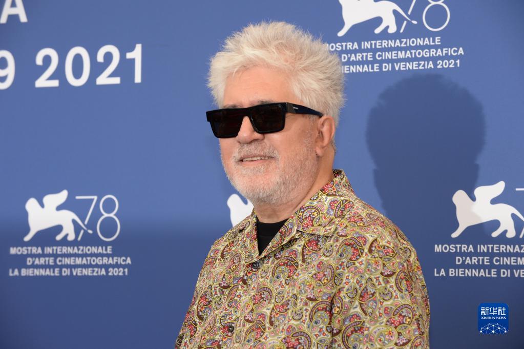 9月1日,在意大利威尼斯利多島的第78屆威尼斯國際電影節現場(chǎng),導演佩德羅·阿爾莫多瓦爾亮相影片《平行母親》拍照式。