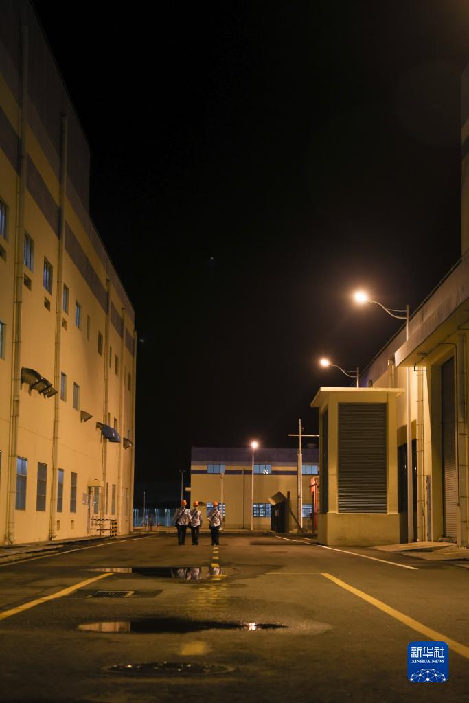 9月7日深夜在海南昌江核電基地內拍攝的準備去上班的員工。