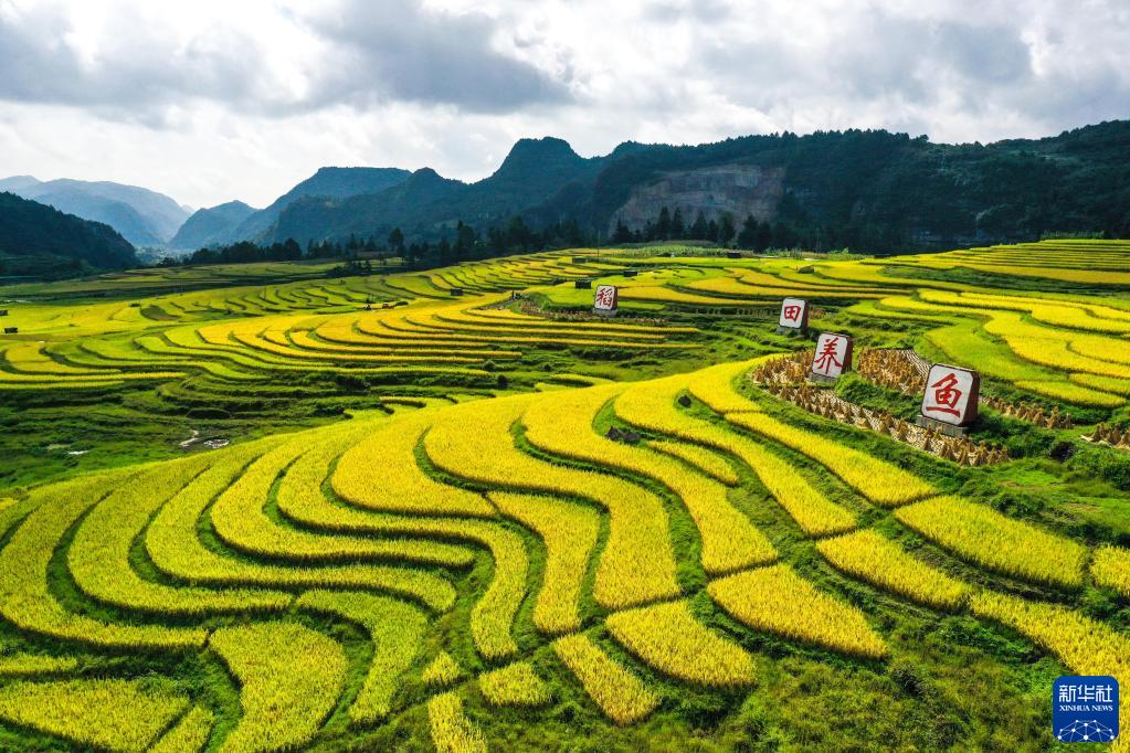 貴州省龍里縣灣灘河鎮石頭村的稻田(9月15日攝,無(wú)人機照片)。