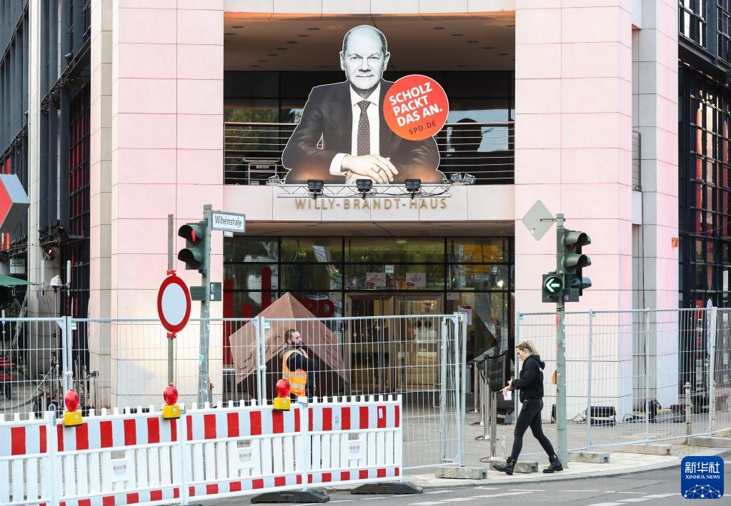 這是9月25日在德國首都柏林拍攝的德國社會(huì )民主黨(社民黨)總部入口。