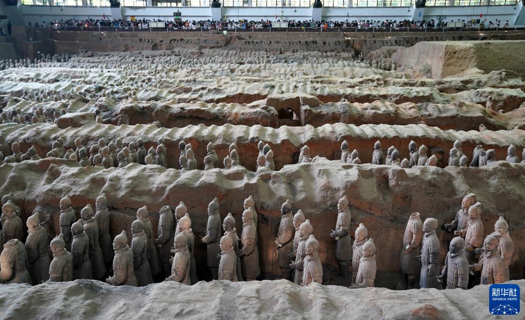 10月2日,游客在陜西西安秦始皇兵馬俑博物館參觀(guān)。