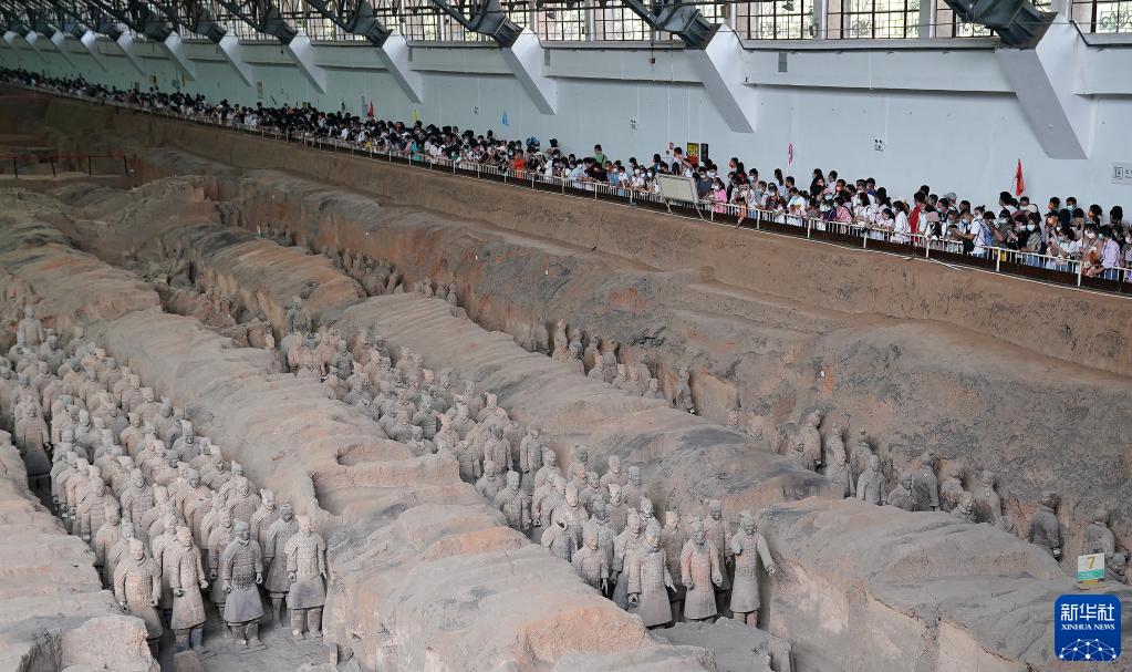 10月2日,游客在陜西西安秦始皇兵馬俑博物館參觀(guān)。