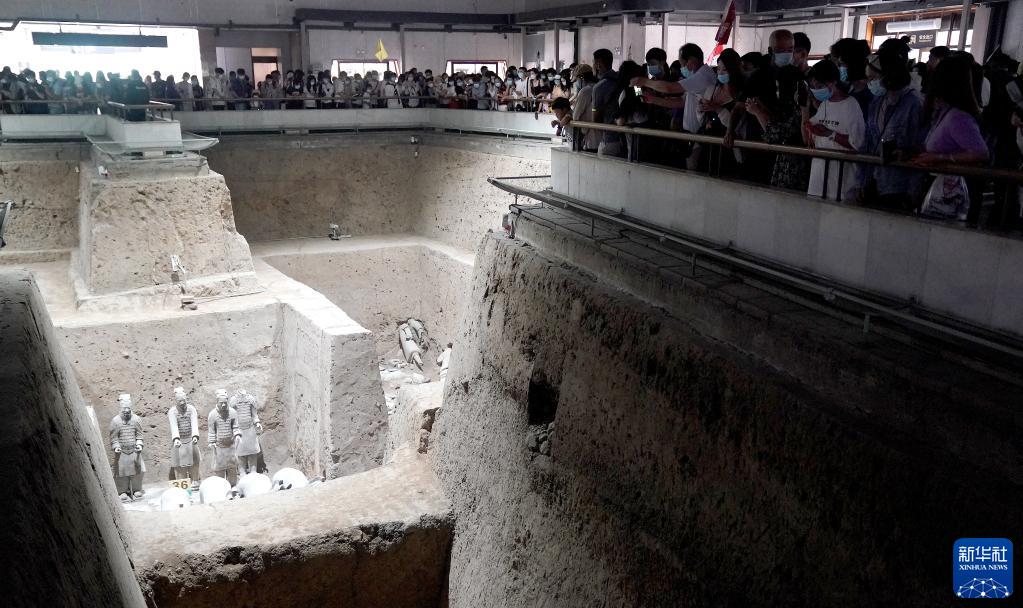 10月2日,游客在陜西西安秦始皇兵馬俑博物館參觀(guān)。