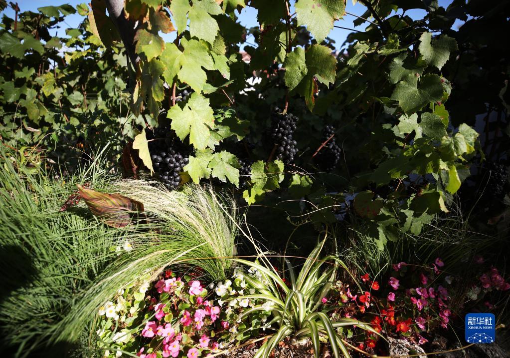 這是10月6日在法國巴黎蒙馬特高地葡萄園拍攝的待收的葡萄。