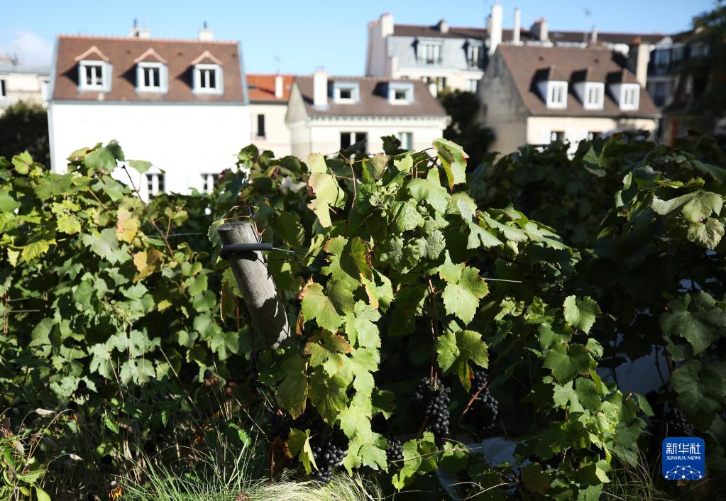 這是10月6日在法國巴黎蒙馬特高地葡萄園拍攝的待收的葡萄。