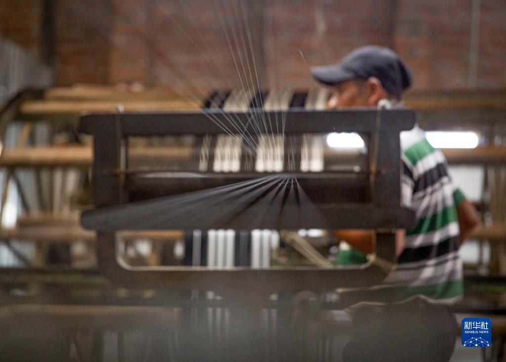 10月10日,一名工人在尼泊爾加德滿(mǎn)都的一處披肩工廠(chǎng)工作。