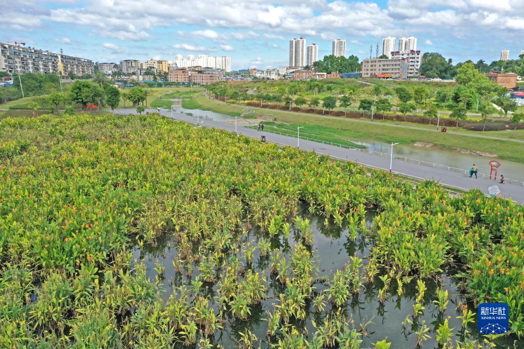 金秋時(shí)節,廣西南寧市沙江河濕地公園草木蔥蘢、水碧花紅,宛如一幅美麗畫(huà)卷。