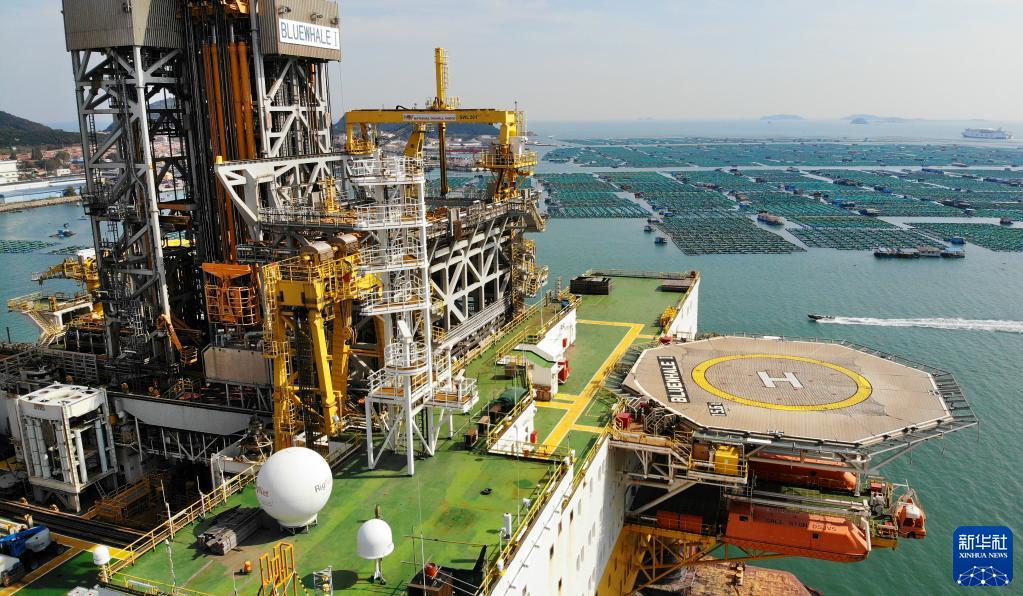 10月18日拍攝的“藍鯨1號”平臺(無(wú)人機照片)。