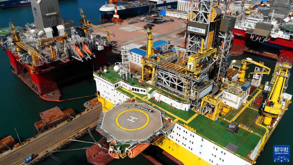 10月18日拍攝的“藍鯨1號”平臺(無(wú)人機照片)。