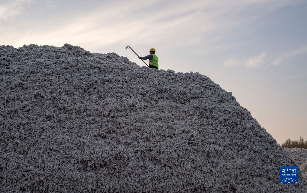 新疆沙灣市一家棉花收購廠(chǎng)的工人整理剛收購的新棉(10月20日攝)。新華社記者 胡虎虎 攝